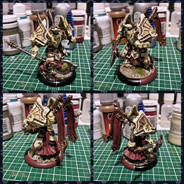 Managed to get some work done on the Bastion Seneschal. Painted some base coats on the pauldrons and leg plates. Did some clean up work with metallics as well. Need to finish up base coats on these pieces before I can move on to highlighting.
