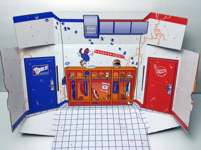 This months box can be made into the locker room from Team Fortress. Even though I haven’t played Team Fortress, I like this box. The details are great and part of the box has a cut out for a bench that goes in the middle of the floor.