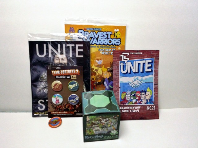 Some exclusives were the Bravest Warriors comic and a special MAD issue. I’m not a big fan of the Bravest Warriors but I’ll read the comic. I used to read MAD magazine when I was younger, and I was a fan of the TV show. The collectors buttons are interesting, need to read up on what they mean. The Rick and Morty puzzle is interesting as well. I will probably let my younger siblings put this together. It’s summer so they will probably need something to do.