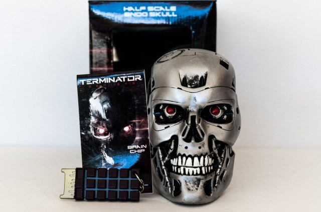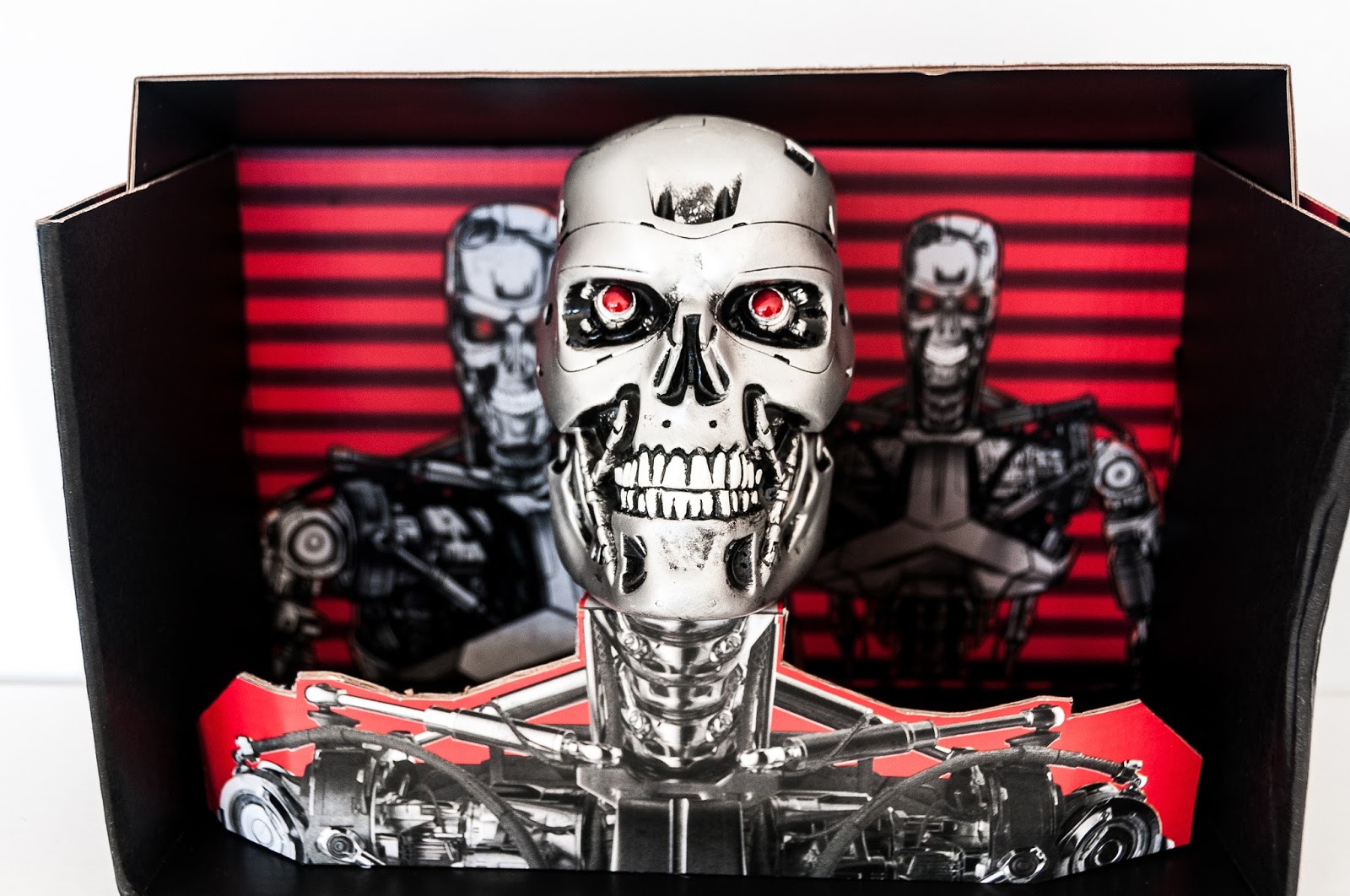 After cutting out some parts of the box you can make a display for your Terminator skull!