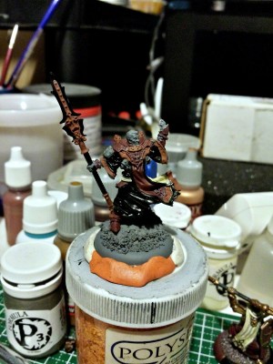 I know it’s not Monday, but I wanted put up some WIP of the new model I’m painting. I started painting my journeyman warcaster Tristan Durant. So far, most of the base coating has been done and I put some base coats for the metals. In keeping with my theme I decided to paint him primarily black with the other cloth pieces maroon and cream. I’m not that great with black but I need the practice. Hopefully this model comes turns out well. Should be posting more shots over the next few weeks. Let me know what you guys think, comment on the bottom.
