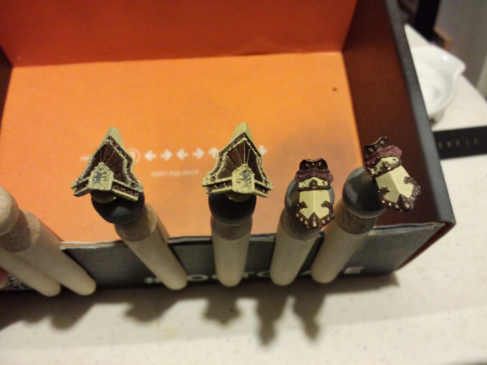 Assembled the missing pieces from the bastion model and did some highlighting. During assembly I got some super glue on the model. I will have to touch up the paint which is going to be a pain. I will need to add more shades and clean up the highlights. This was a fun model to paint and build but it still needs some work. After I finish the touch ups I will be working on Tristan.