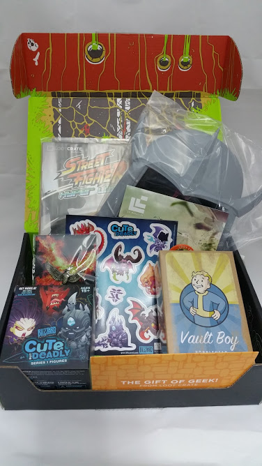 I think this crate wasn’t too bad. The Mocking Jay pin and comic are okay. I also liked the Vault Boy bobble head and the Blizzard miniature but the shredder sunglasses and magnets were a miss. This month didn’t beat last month but I think next month will be better.