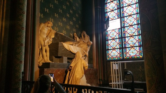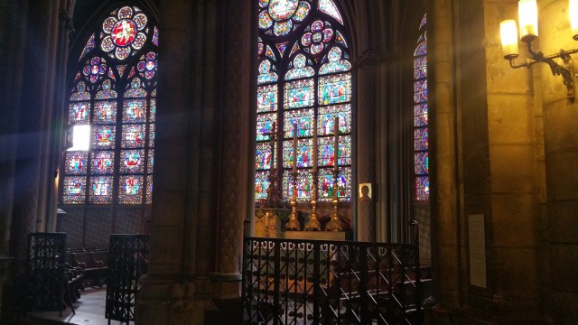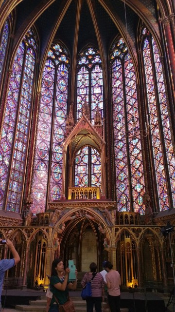 Not far from the Notre Dame Cathedral is the Sainte-Chapelle chapel. It is a small one room chapel but it has beautiful stained glass windows. Information detailing the restoration of the chapel is also on display