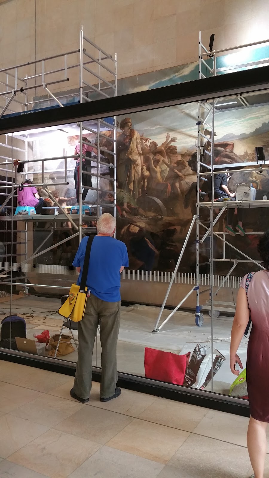 Not far from the Notre Dame Cathedral is the Sainte-Chapelle chapel. It is a small one room chapel but it has beautiful stained glass windows. Information detailing the restoration of the chapel is also on display