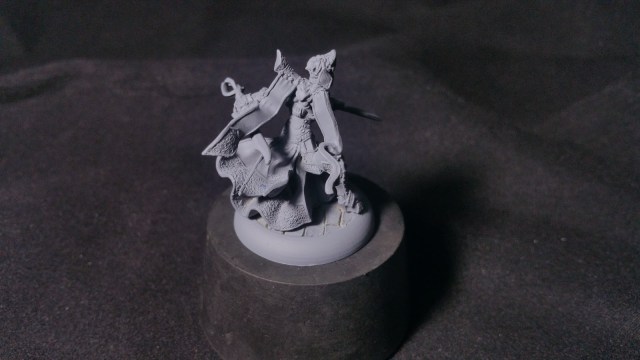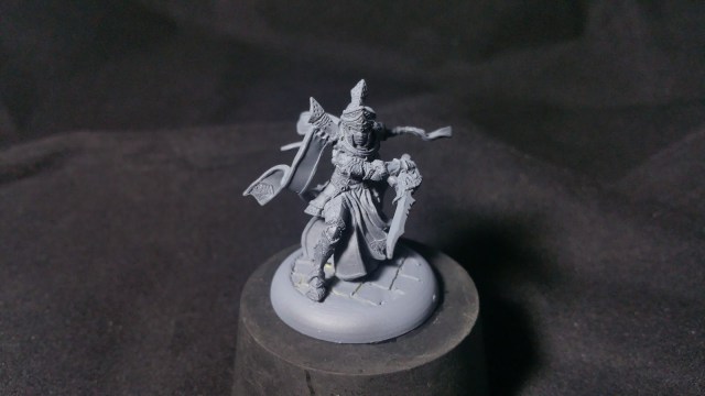 I’m almost done with the Devout and I have to prime my next model to paint. I assembled Thyra earlier in the year to test out a list but now I think it is time to paint her. Small bits of the model are missing and the pose is a little off but it will have to do. The smaller model and details may be a hurdle that I will have to overcome. It’s going to be a challenge but it’s only going to make me better as a painter.