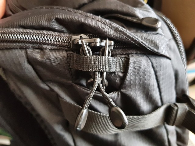 This bag comes with two types of zippers designed to prevent theft, the zip clip and the secured zip tab. Both zipper types make it harder to pickpocket which is a plus when you’re on a crowded area. The zip tabs are easy to use but the zip clip is a bit harder. Trying to get both zippers to clip is a bit difficult and takes a minute. It’s a great system that could be improved upon in the next version of this bag. The main compartment zipper has holes for a travel lock as well for extra security.