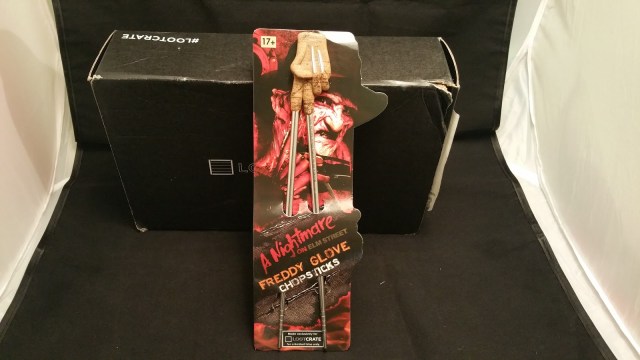 Next up is a kitchen item from A Nightmare on Elm Street. This is a cool item but it is impractical. I can’t use the chopsitcks with the rubber glove attached. I will have to take it off to use it.