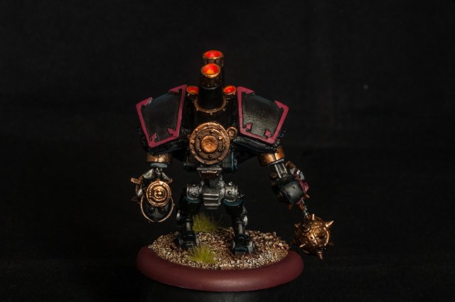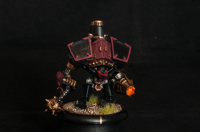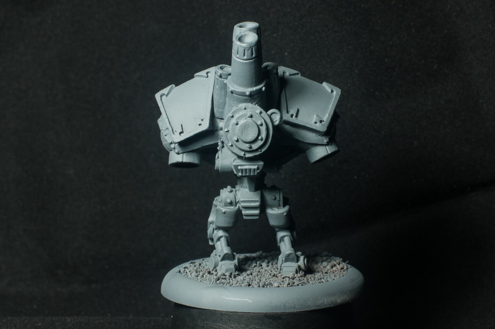 With the Vanquisher finished, I’m moving on to the other heavy warjack in the lot, the Reckoner. The model is not perfect. Some of the details were obscured during the paint stripping process and I had to do a lot of major gap filling near the base of the smoke stacks. Also, whoever assembled the model scraped a little too much off some parts. I should be able to work with it but I will not repair it. Hopefully, it will look decent after it’s painted.